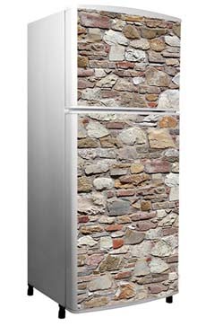 - Начинайте оклеивать холодильник сверху, наложив наклейку липкой стороной с небольшим припуском вверху.